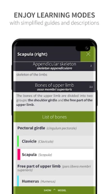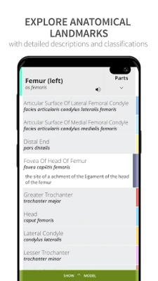 *** Learning mode: A vivid, color coded 3D map allows users to view high-resolution textures accompanied by informative descriptions from comprehensive textbook ‘Memorix Anatomy’. These are arranged into a proper anatomical hierarchy, meaning learning is structured and easy to understand.