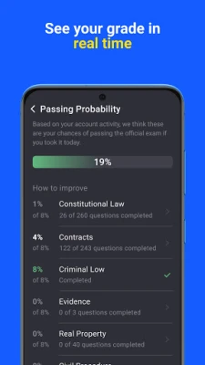 Practice with real questions anytime, anywhere. When you have to rush out of the house. Or you’re on your phone waiting for an appointment. Or it’s late at night, and your eyes are burning. Take BarPrepHero on the train. Into the doctor’s office. With you to bed.