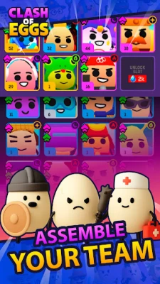 Jump into battles and discover amazing locations: the Salzburg Egg Castle, Office Jungles, Ancient Ruins with broken shells, and even the Cosmic Egg Station! The world of Clash of Eggs is full of humor, references, and unexpected discoveries. Gather a team of the most unlikely heroes: Napoleon in a shell, an egg knight, a businessman in a suit, even an astronaut—each with their own skills and personality! These heroes are eager to dive into exciting adventures!
