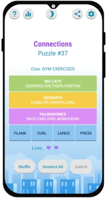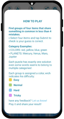 HOW TO PLAY Find groups of four items that share something in common in less than 4 mistakes.