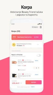 U svakom trenutku na raspolaganju imate pregled aktuelnih promocija, informacije o trendovima, novitetima i nagradnim igrama, pristup vašoj šoping listi, pregled stanja tačaka Beauty Friend kartice, kao i pregled proizvoda koje možete, pod posebnim uslovima, kupiti zamjenom tačaka.