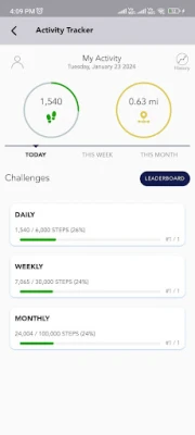 Track your steps, compete in challenges with colleagues, and prioritize your wellbeing with the Activity Tracker! Through syncing the Google Fit or Health Connect already on your device, you can see your daily, weekly, and monthly activity directly in the app. After that initial sync is completed, you can begin tracking activity, and work towards achieving your fitness goals! If you do not see the Activity Tracker live in your app, please reach out to your HR team to enable the feature for you.