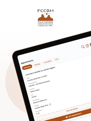 Four Corners Community Behavioral Health (FCCBH) Client Portal is a virtual online tool that provides secure online access to behavioral health services for those enrolled in agency programs. The Portal allows participants to virtually attend appointments, view upcoming appointments, and submit forms.