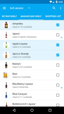 ★ MANAGE BAR ★ choose what ingredients are on your bar shelf, see how many cocktails are available with particular ingredient.