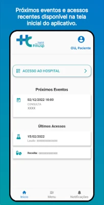 Aplicativo destinado aos pacientes do Hospital das Clínicas da Faculdade de Medicina USP, onde os pacientes irão ter acesso a diversas funcionalidades como: