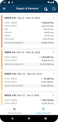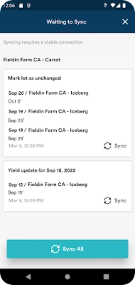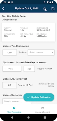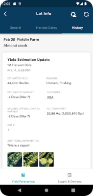 With Smarter Yield, the forecaster can easily: Log findings for each lot Update the estimated yield and the days to harvest Report weight measurements and stand percentage Include additional information about the condition of the lot with photos from the field Data entered in Smarter Yield is automatically updated in Fieldin's database, making it available for decision-makers to immediately adjust according to changes in demand and supply